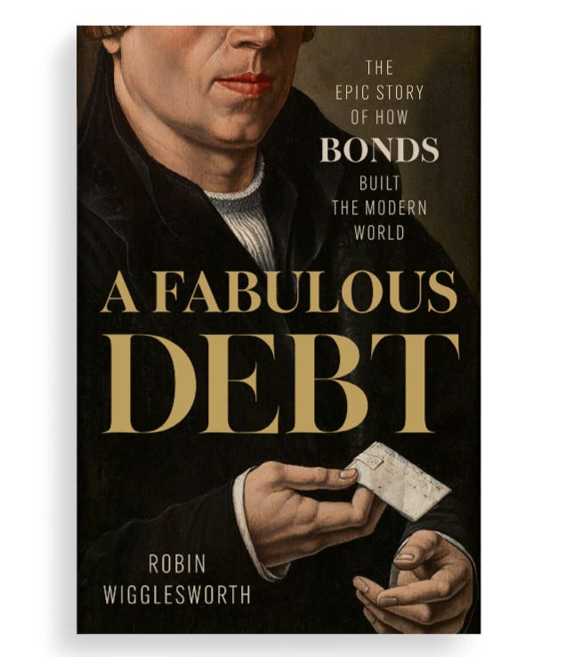Sadly, Penguin Random House wasn’t crazy about Damn He FICC: How The Bond Market Got Hot as a title, but hopefully A Fabulous Debt: The Epic Story of How Bonds Built the Modern World captures the grandeur of the story I’ve tried to write, as does the cover.